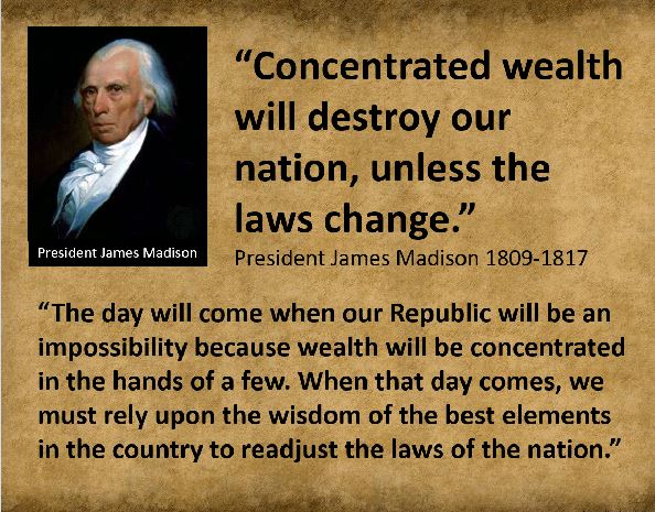 “The greatest threat to any free society is the concentration of power and wealth into the hands of a few.” James Madison